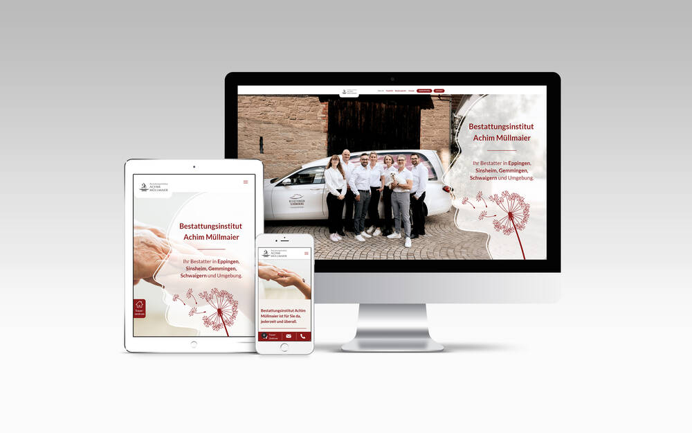 Für das Bestattungsinstitut Achim Müllmaier wurde ein kompletter Website-Relaunch realisiert, bei dem Gestaltung, Seitenstruktur und technische Umsetzung neu aufgebaut wurden. Die visuelle Gestaltung nutzt eine warme Farbwelt aus Bordeaux, Creme und gedeckten Naturtönen in Verbindung mit ruhigen, emotionalen Bildmotiven. Die Inhalte wurden neu strukturiert und klar auf die Bereiche Trauerhilfe, Bestattungsarten, Vorsorge und Gedenken verteilt. Die Umsetzung erfolgte in vollständig responsive Design mit Fokus auf Übersichtlichkeit, stabiler Performance und klarer Nutzerführung.