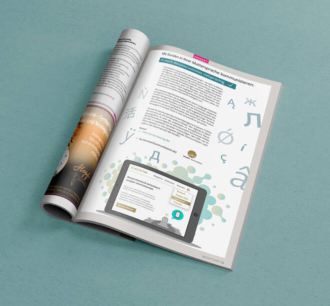 Im aktuellen Magazin BESTATTUNG des Bundesverband Bestattungsbedarf klären wir in einem Beitrag auf, wie Bestattungsunternehmen mithilfe von Artificial Intelligence (AI) Ihre komplette digitale Kommunikation nach außen in die Muttersprache des Kunden transportieren.