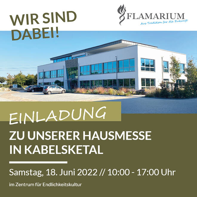 Am 18. Juni 2022 stellen wir auf der Hausmesse der Flamarium Saalkreis GmbH & Co. KG im Zentrum für Endlichkeitskultur in Kabelsketal aus.