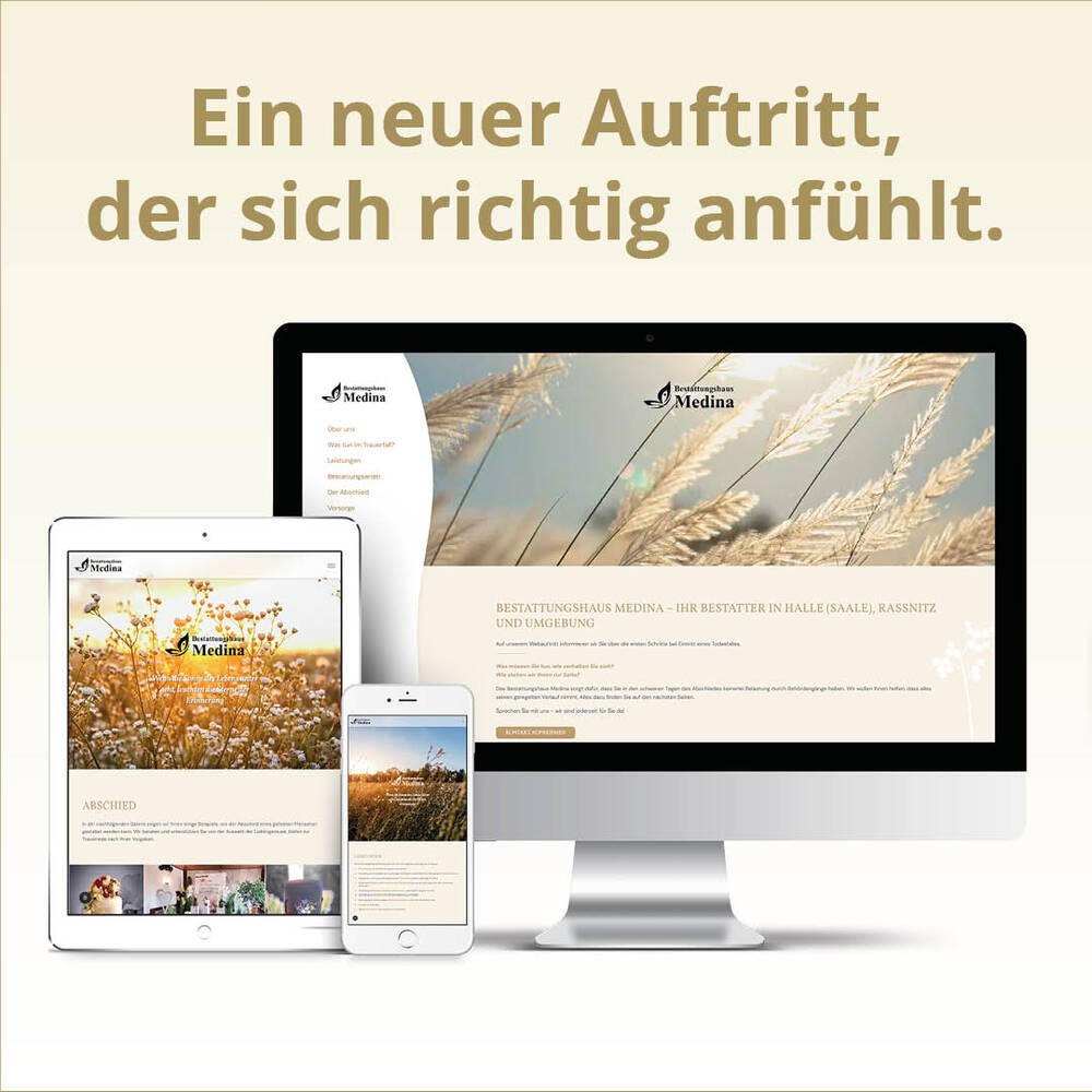 Gemeinsam mit Bestattungshaus Medina durften wir einen Markenauftritt neu denken – ruhig, klar und mit viel Gefühl für das, was wirklich zählt. Von der Website bis zu den Geschäftspapieren entstand ein Erscheinungsbild, das Vertrauen schafft und Emotion zeigt. Danke für die offene, vertrauensvolle Zusammenarbeit, für ehrliches Feedback und den gemeinsamen Anspruch, Dinge nicht „irgendwie“, sondern stimmig zu machen. So fühlt sich gute Gestaltung an. Bereit für einen Markenauftritt, der wirkt? Lassen Sie sich von uns beraten!